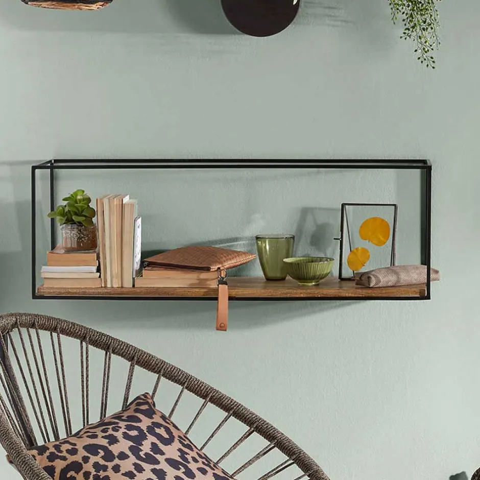 - Dekoratives Wandregal in Fichtefarben und Schwarz