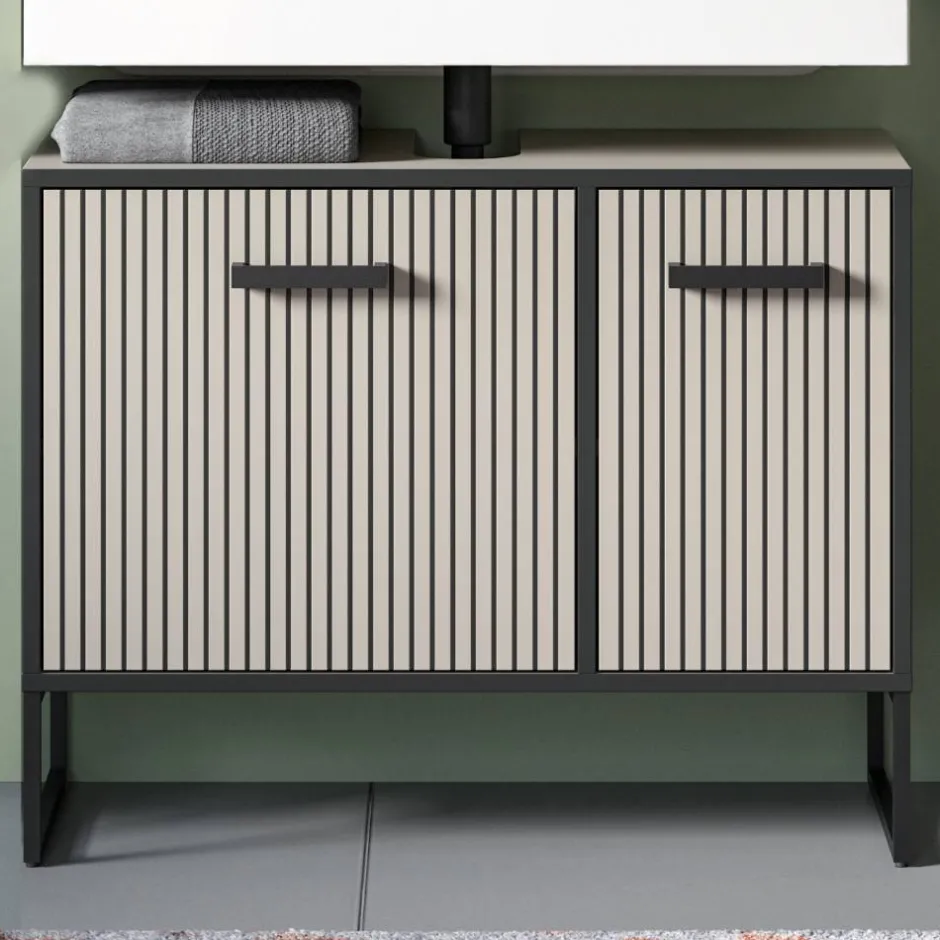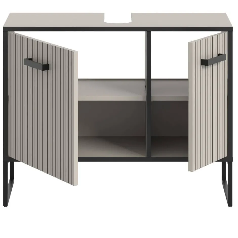 - Trendiger Bad Unterschrank in Hellgrau und Schwarz