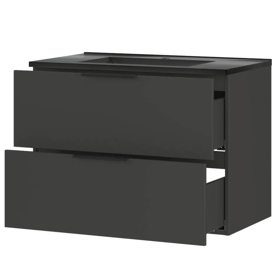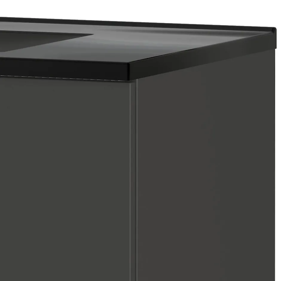 - Schwarzes Mineralguss-Waschbecken mit Lack-Beschichtung inklusive