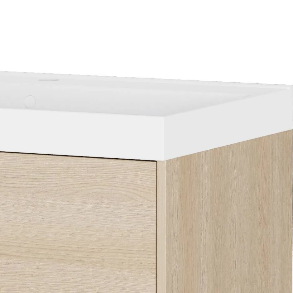 - Eingelassenes Keramik-Waschbecken in Weiß inklusive, mittig ein vorgefertigtes Loch zur Montage der Armaturen