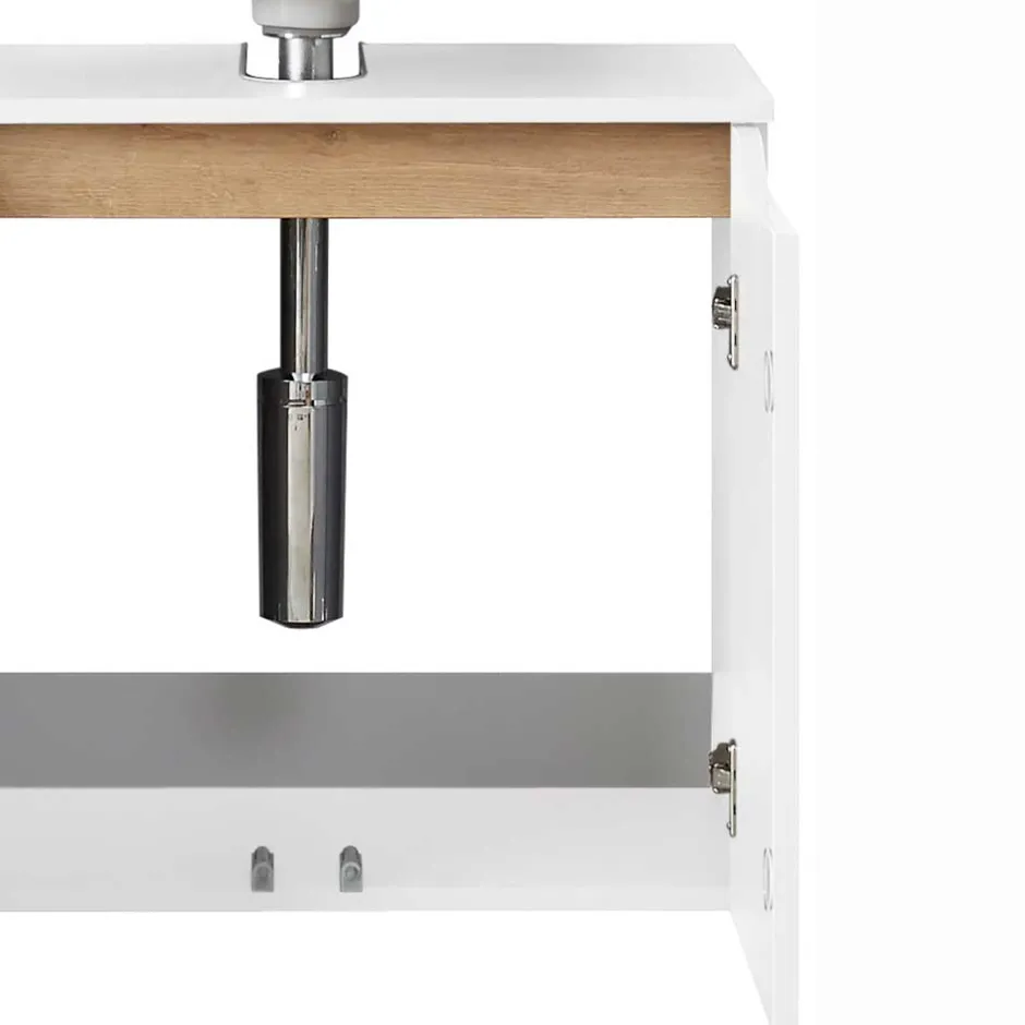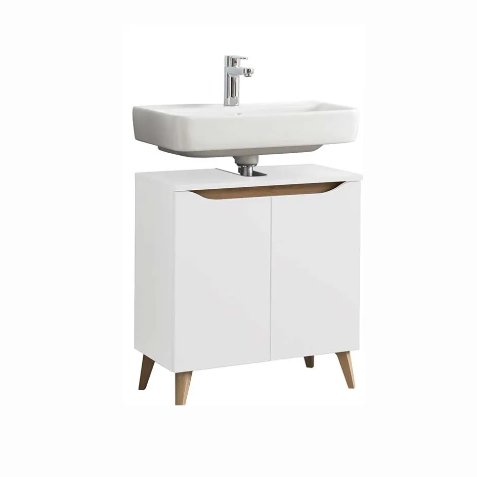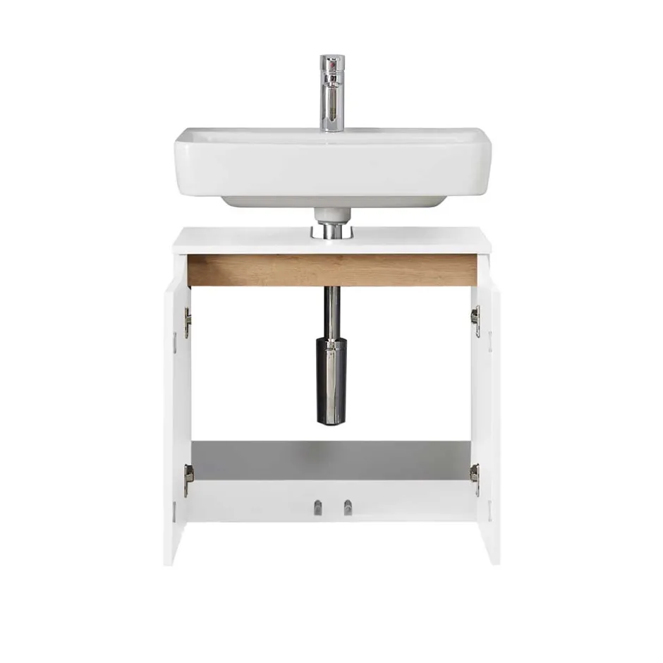 - Trendiger Waschbeckenunterschrank in Weiß und Eichefarben