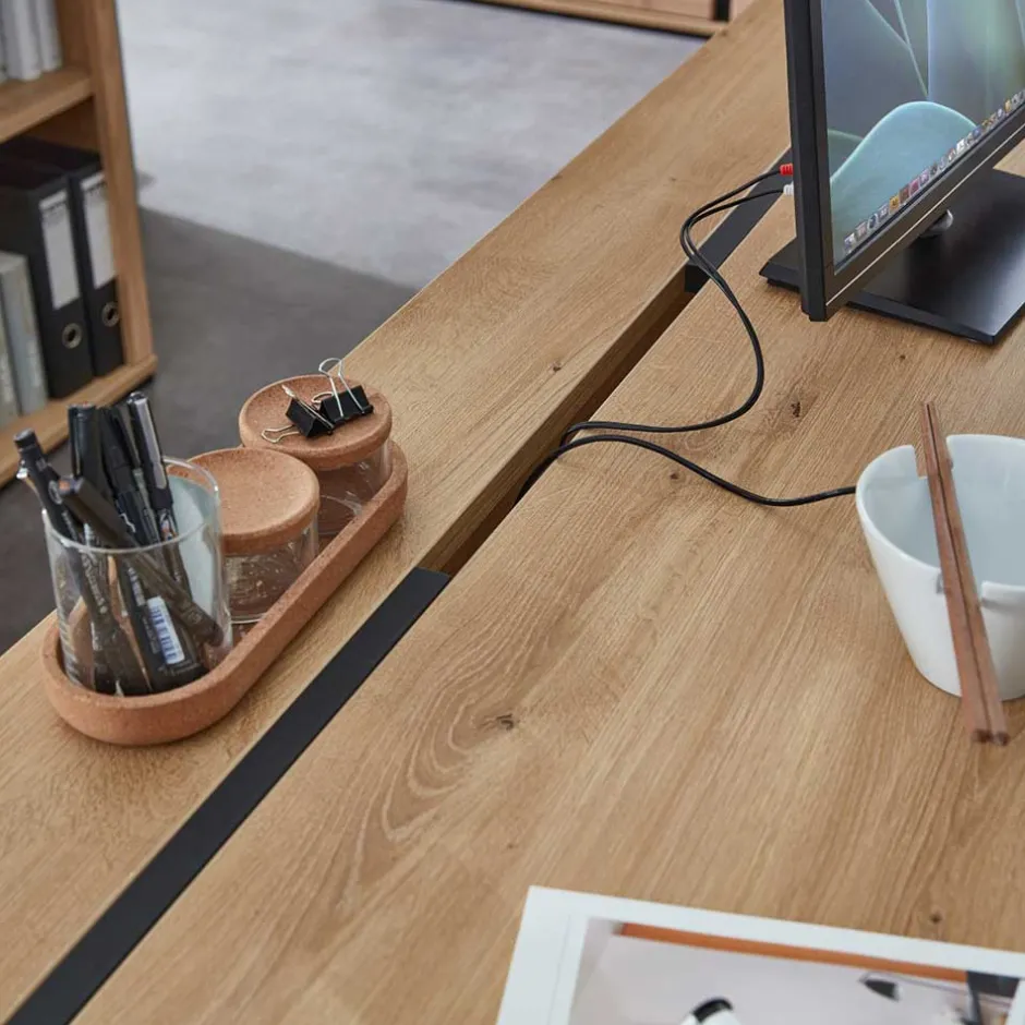 - Für mehr Ordnung am Arbeitsplatz sorgt der praktische Kabeldurchlass