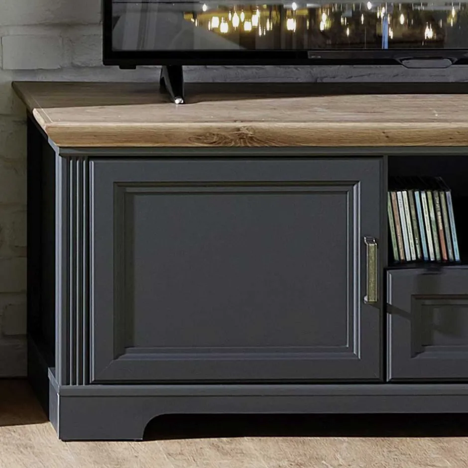 - Erstklassige Wohnwand in Dunkelgrau und Eichefarben