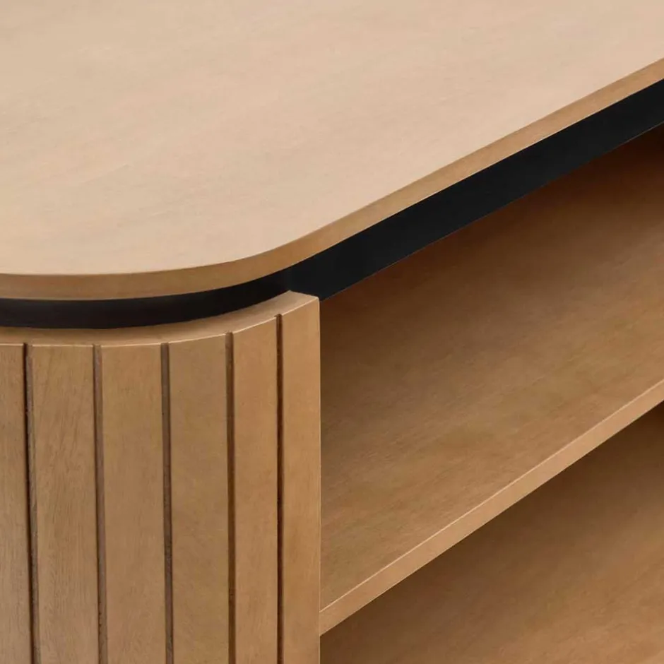 - Formvollendetes Regal in Mangoholz Naturfarben und Schwarz