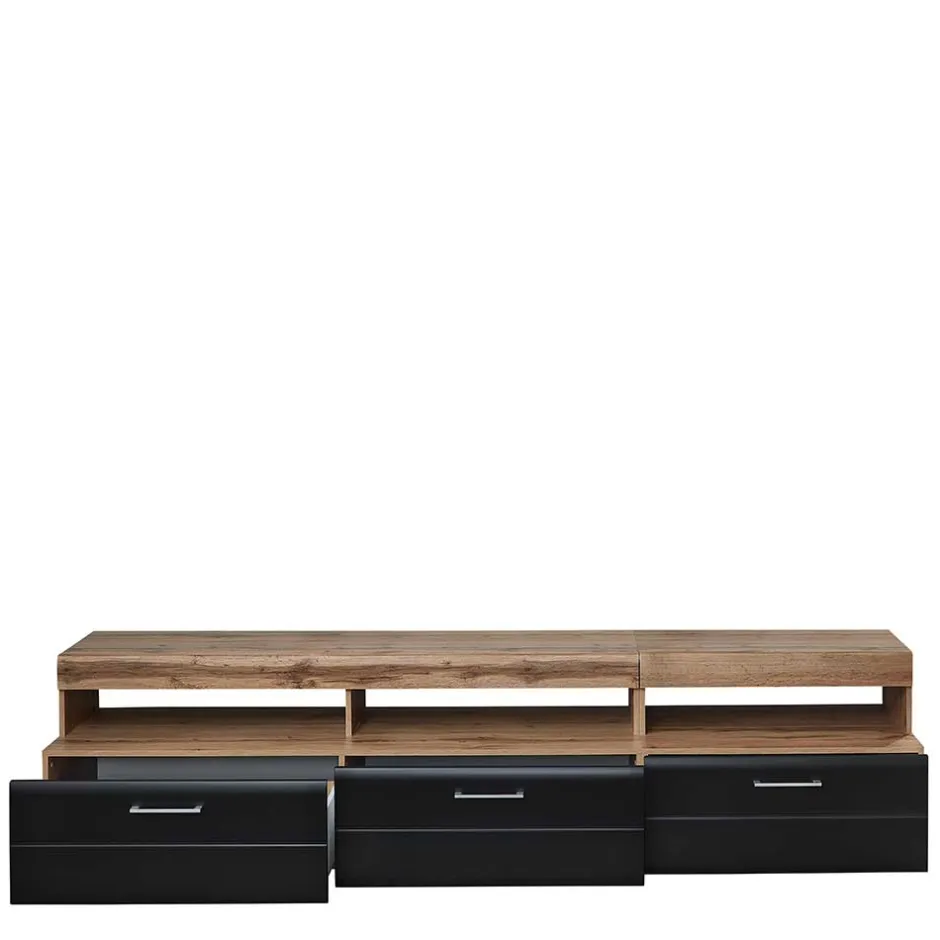 - Klasse Wohnwand in Schwarz und Wildeichefarben
