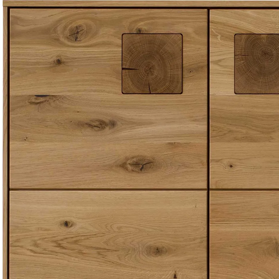 - Rückwände aus Holzwerkstoff, sichtbare Flächen mit Eiche echtholzfurniert und sandgestrahlt