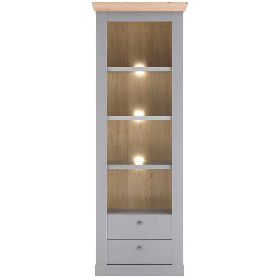 - Trendstarkes Stauraumregal in Lichtgrau und Eichefarben