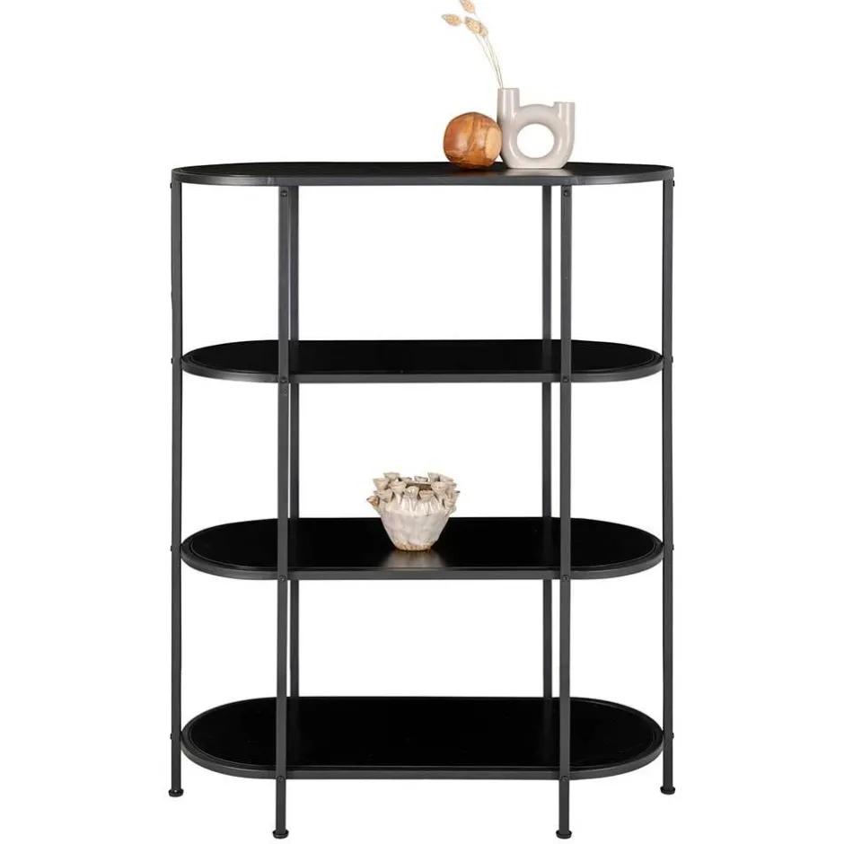 - Aus stabiler Spanplatte (Böden) und Stahl (Gestell) hergestellt