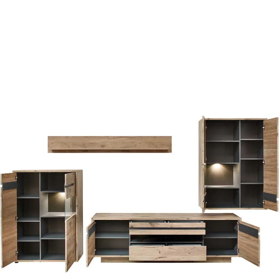 - Großzügige Wohnwand in Wildeichefarben