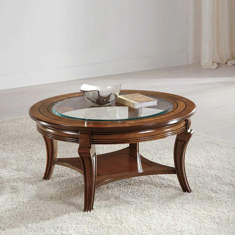 - Tischplatte mit transparenter Glaseinlage gestaltet