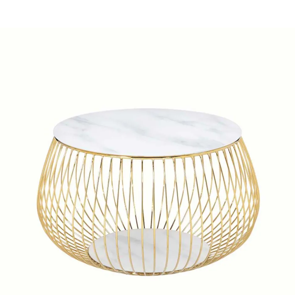 - Eleganter Couchtisch in Weiß, Hellgrau und Goldfarben