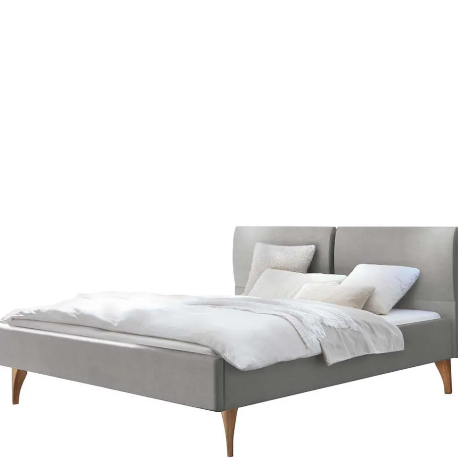 - Harmonische Polsterbett in Grau und Eiche Bianco