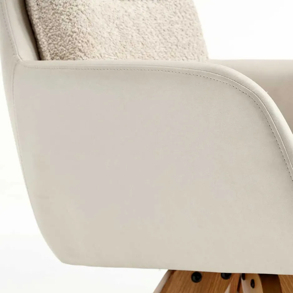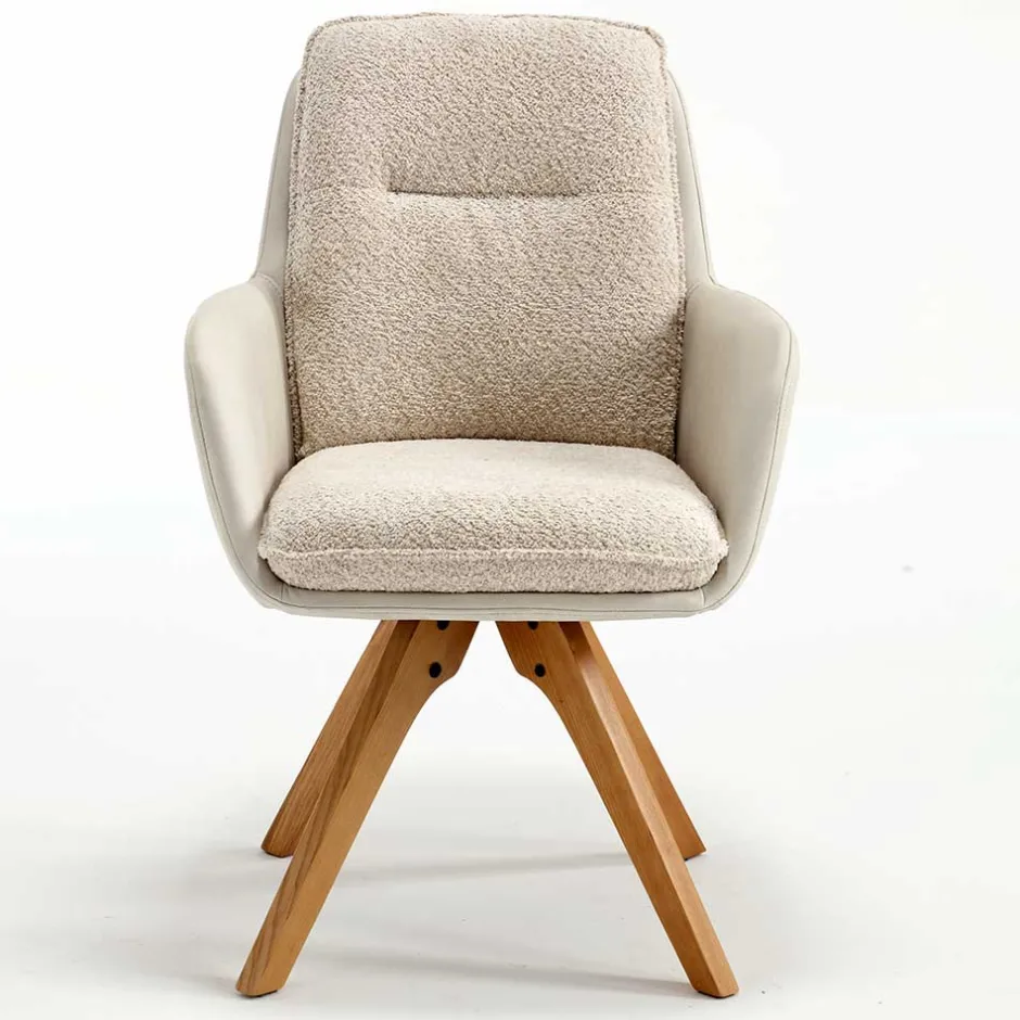 - Aus Boucle, Kunstleder und Buche Massivholz gefertigt