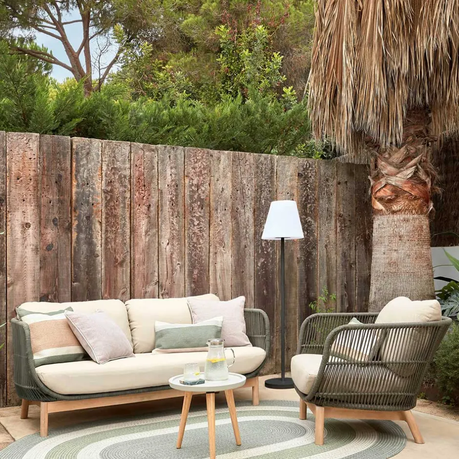 - Aus Akazie Massivholz, Flachgewebe und Kordelgeflecht gefertigt