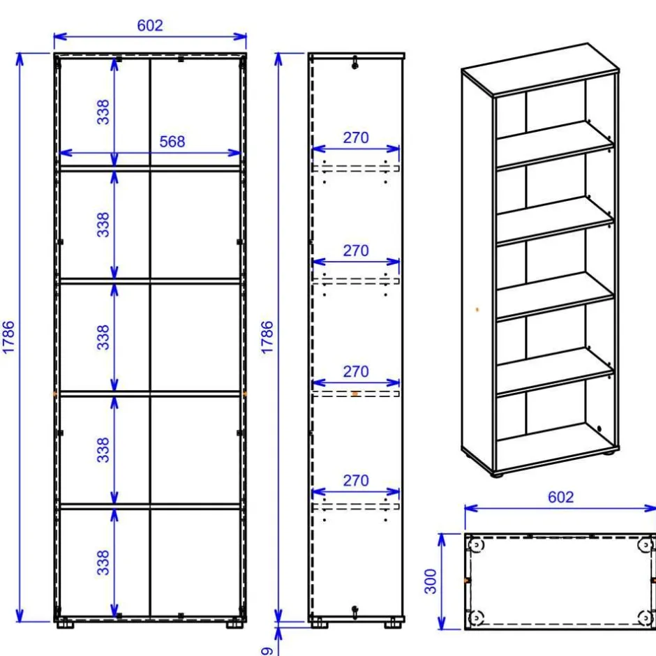 - 60 cm Breit, 180 cm Hoch, 30 cm Tief