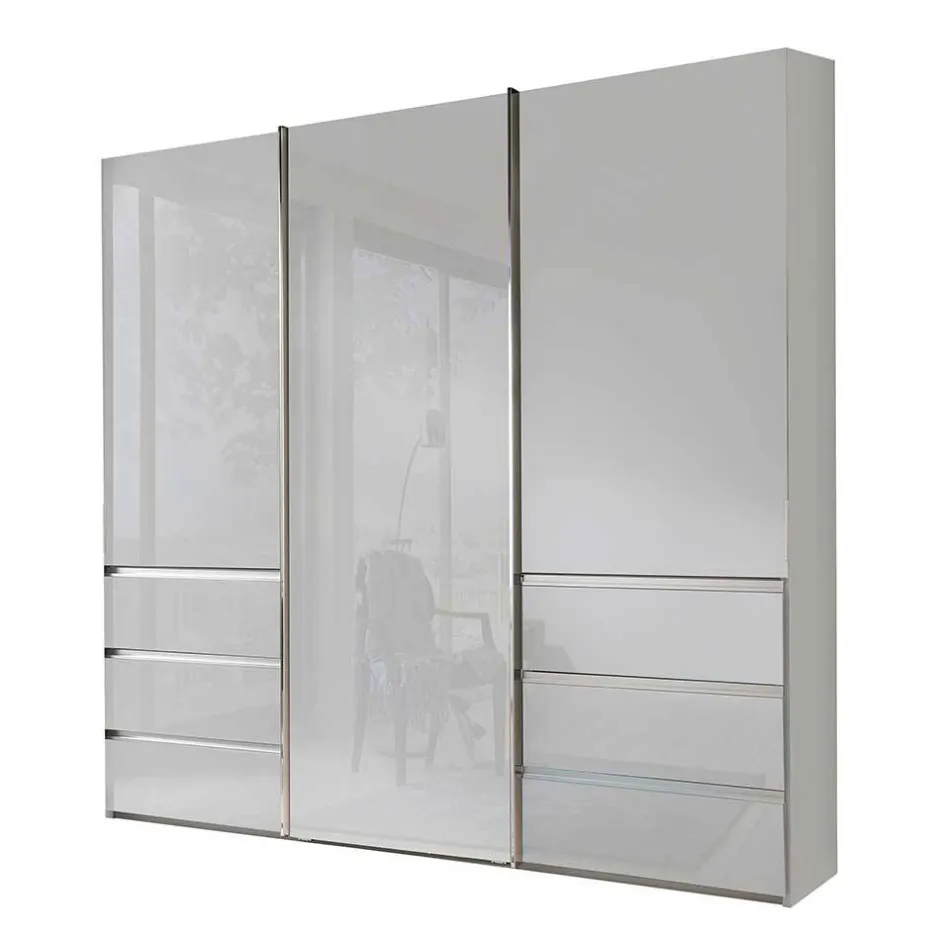 - Oberfläche der Front mit Glas beschichtet, Korpus foliert, Innendekor Silber-Grau gestreift