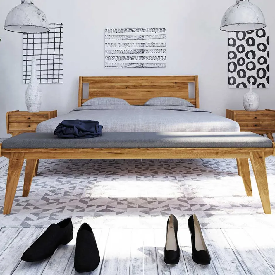 - Qualitativ hochwertige Bettbank in Wildeichefarben und Hellgrau