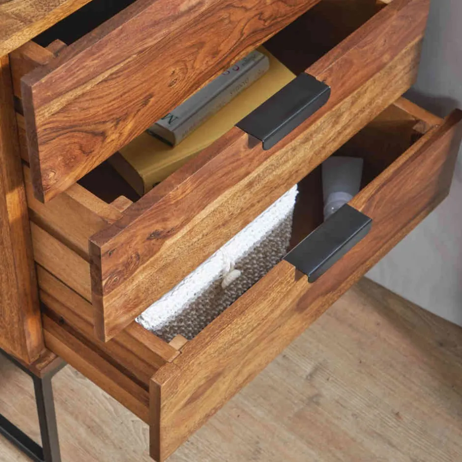 - Aus massivem Sheeshamholz und Metall hergestellt