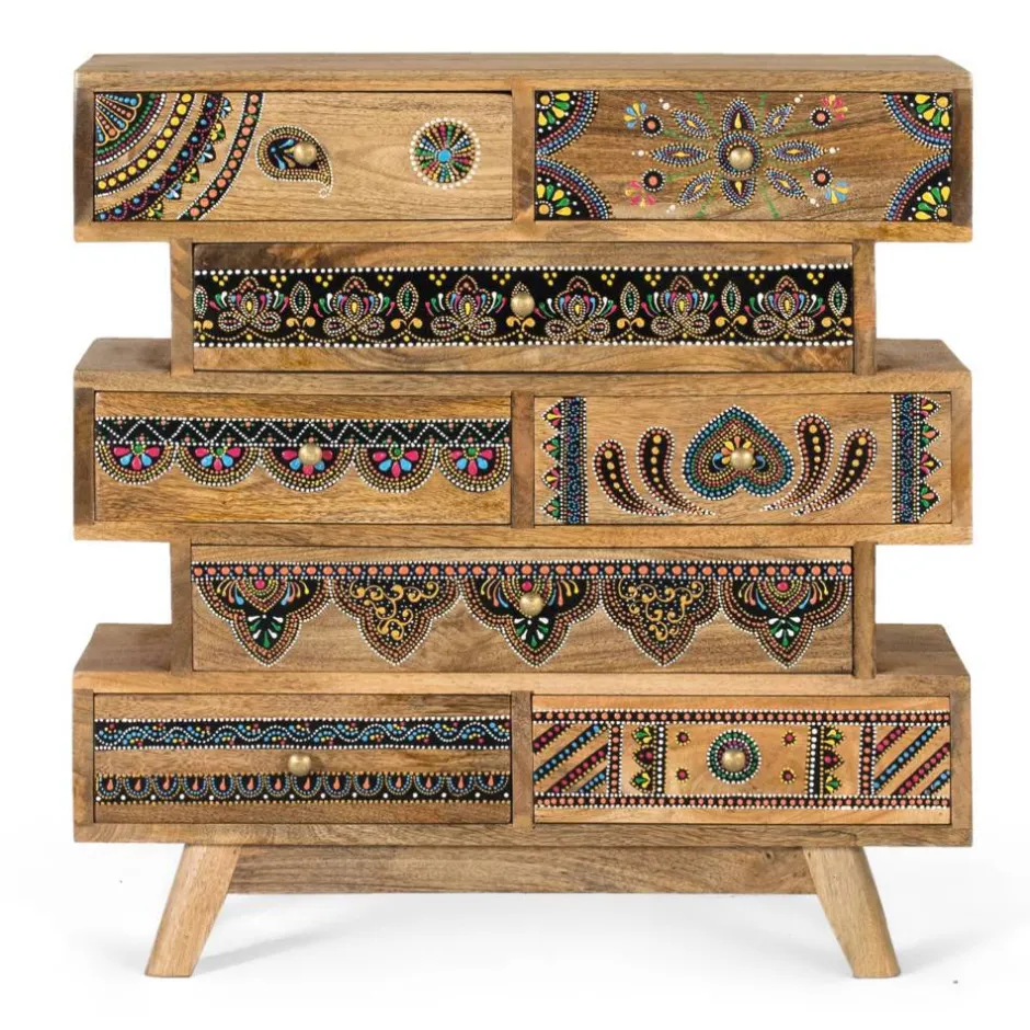 - Hübsche Kommode in Mangoholz Naturfarben und Bunt