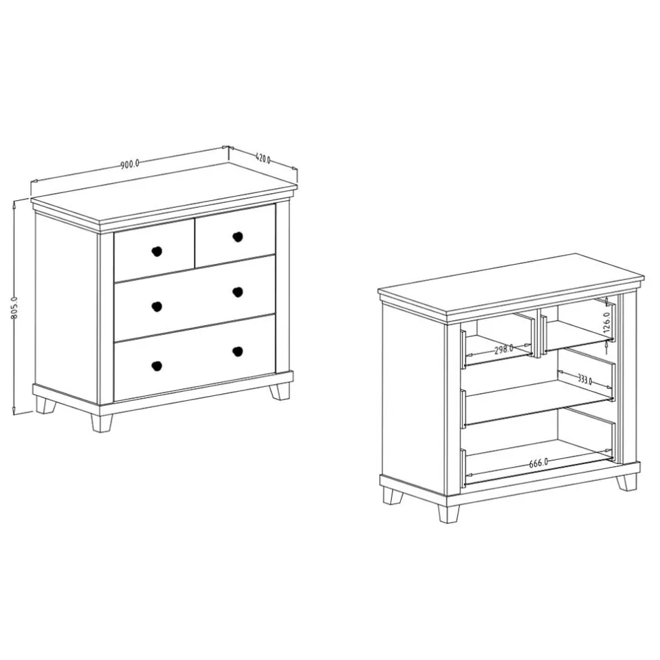 - Vier Schubladen mit Metallauszug, Soft Close Funktion und Vollauszug