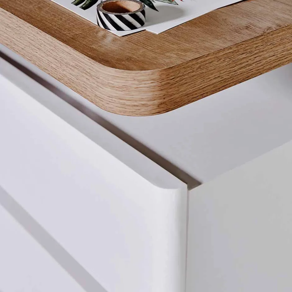 - Zeitgemäßer Schreibtisch in Weiß und Eichefarben