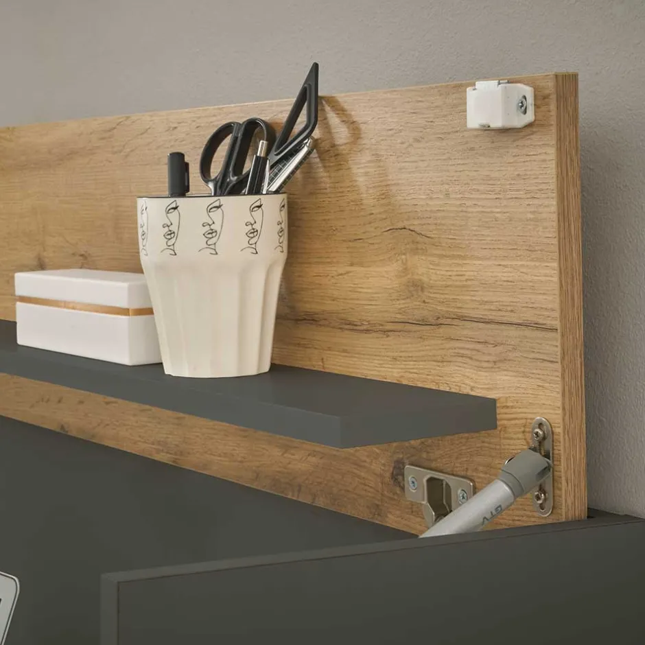 - Platzsparender Hängesekretär in Anthrazit und Wildeichefarben