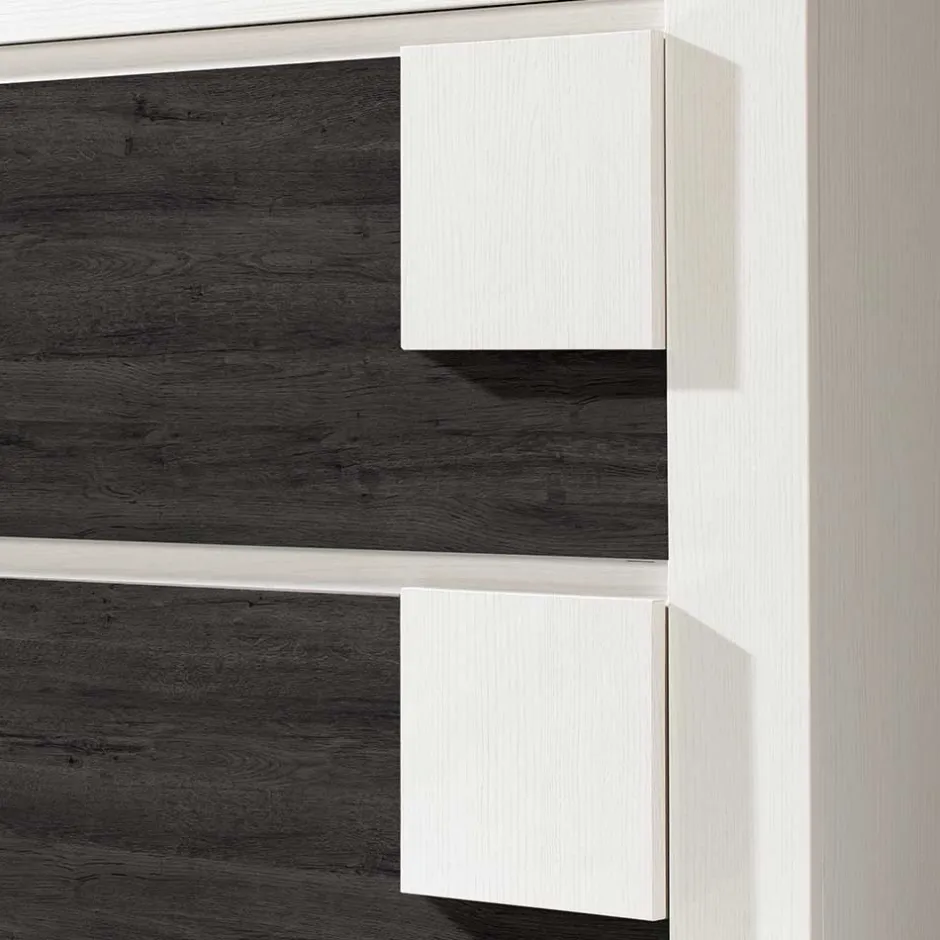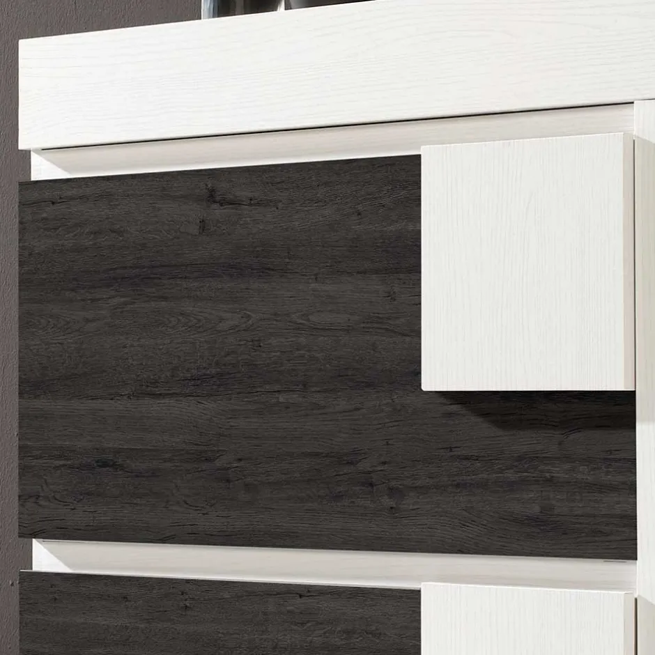 - Pflegeleichte, melaminbeschichtete Oberfläche in schwarzgrauer und weißer Holzoptik