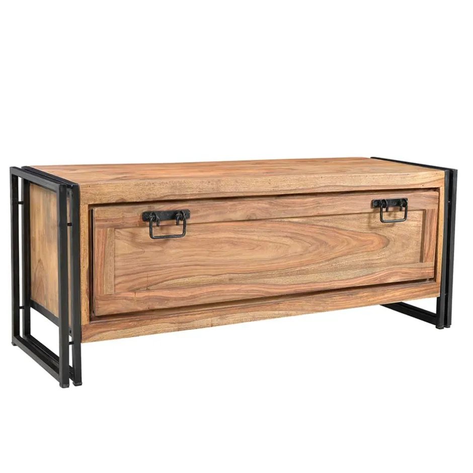 - Gebeizte und lackierte Holzoberfläche, Metallgestell antikschwarz lackiert