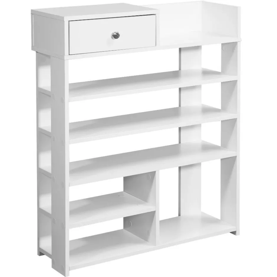 - Sechs Fächer als Ablagen für Schuhe und Accessoires plus oben eine zusätzliche Ablage für Schlüssel oder Handy