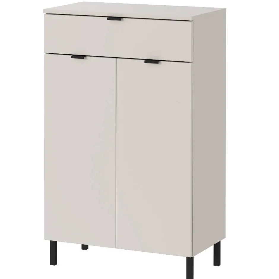 - Oben eine Schublade mit Metallauszug und Soft Close Funktion (Selbsteinzug), belastbar bis max. 10 kg