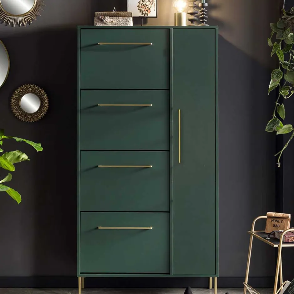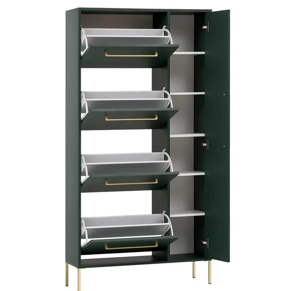 - Schicker Schuhschrank in Dunkelgrün und Goldfarben