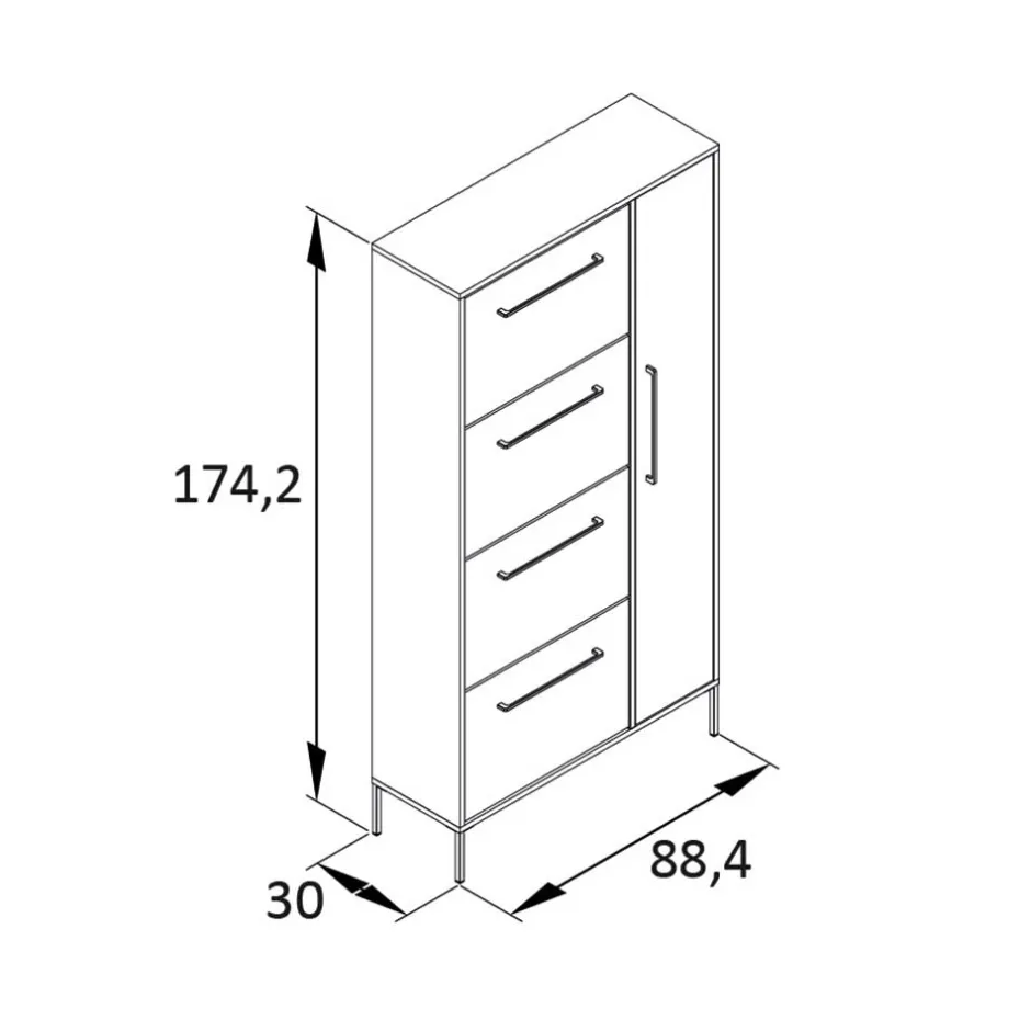 - 89 cm Breit, 174 cm Hoch, 30 cm Tief