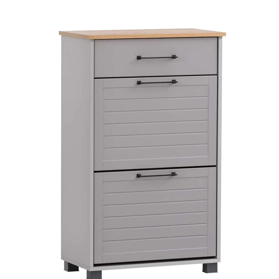 - Schicker Schuhschrank in Platingrau und Eichefarben