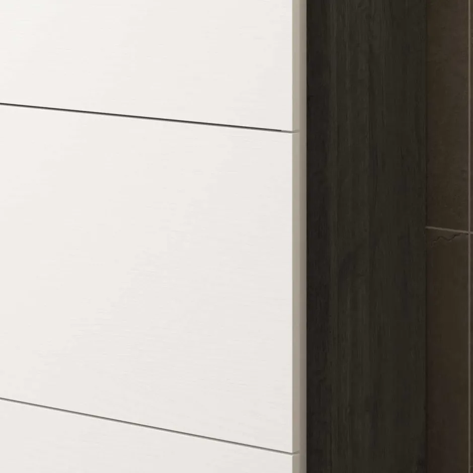 - Melaminbeschichtete Oberfläche in schwarzgrauer und weißer Holzoptik