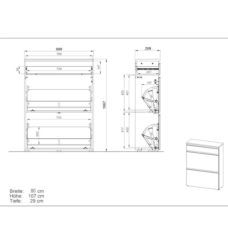 - 80 cm Breit, 107 cm Hoch, 29 cm Tief