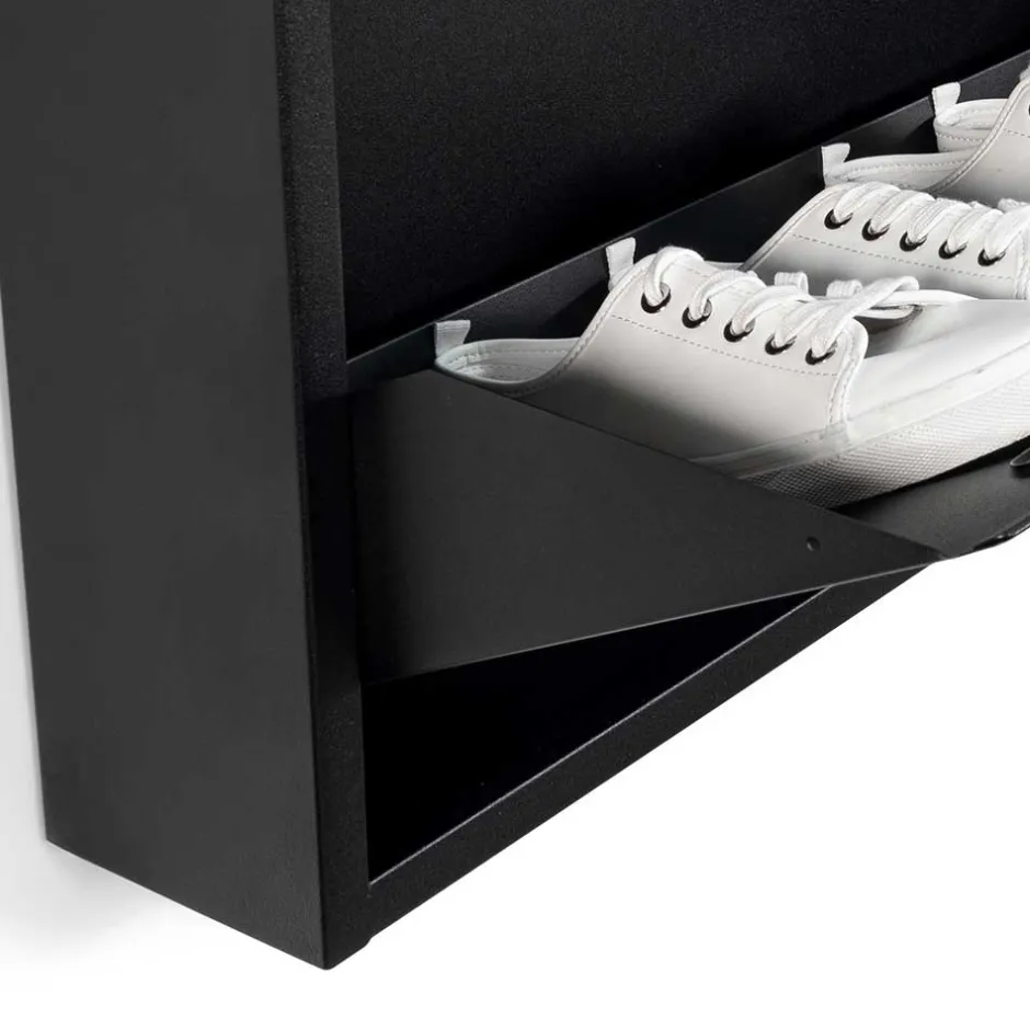 - Elegant und modern präsentiert sich das Design dieses schwarzen Schuhschranks