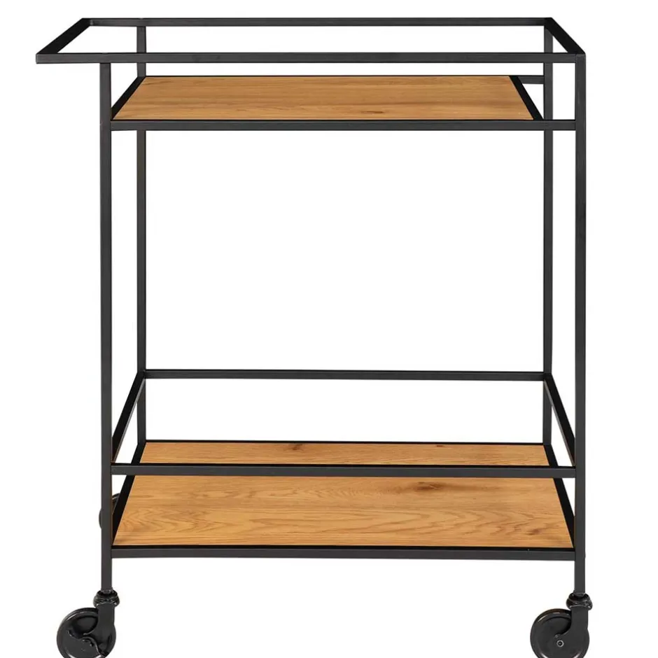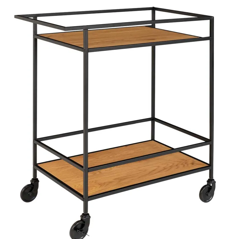 - Kompakter Servierwagen in Eichefarben und Schwarz