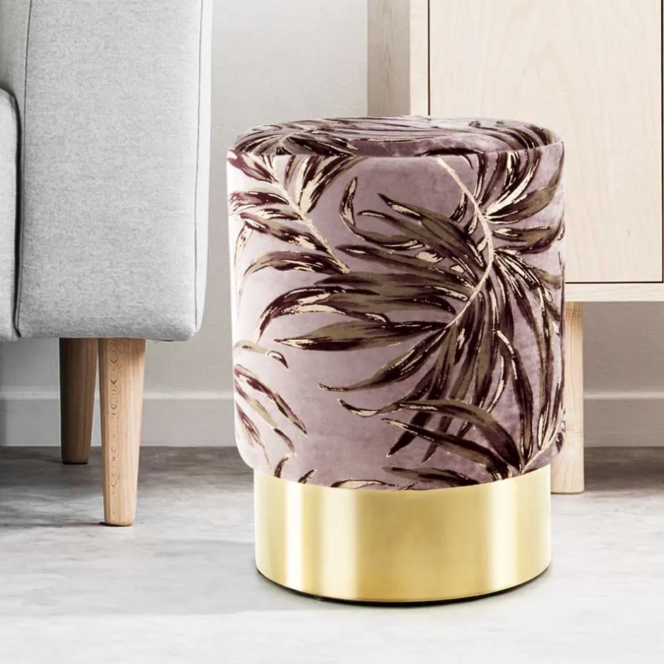 - Eleganter Polsterhocker in Violett und Goldfarben