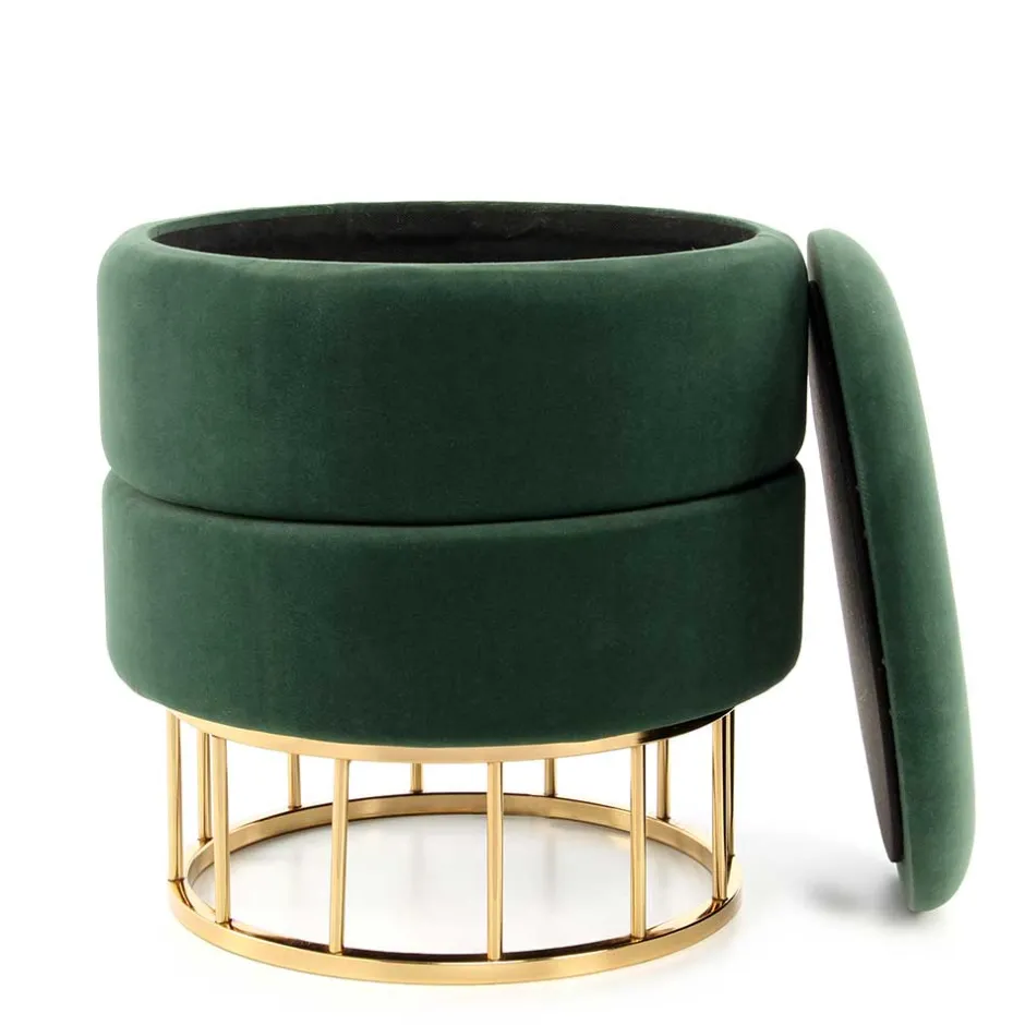 - Topaktueller Hocker in Dunkelgrün und Goldfarben