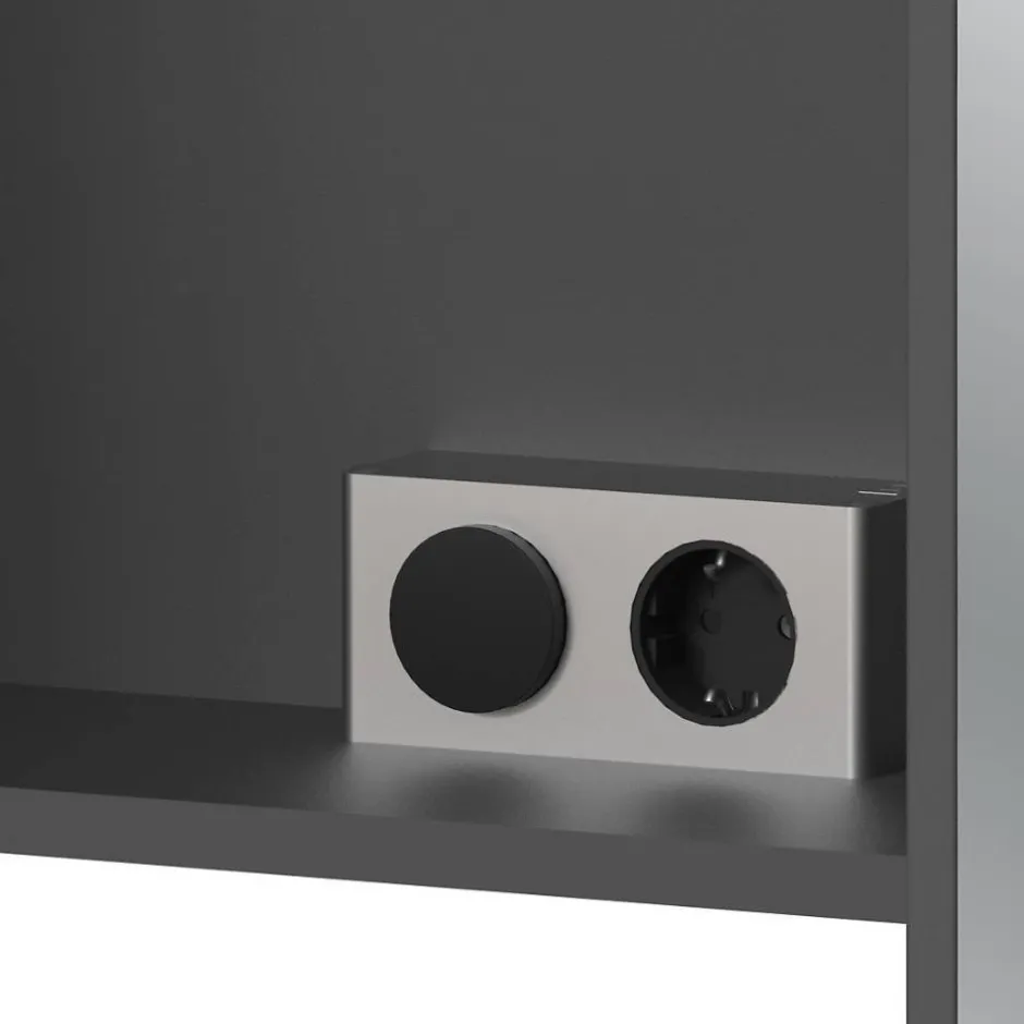 - Aus Spiegelglas, Spanplatte (Korpus) und MDF (Front und Oberboden) gefertigt