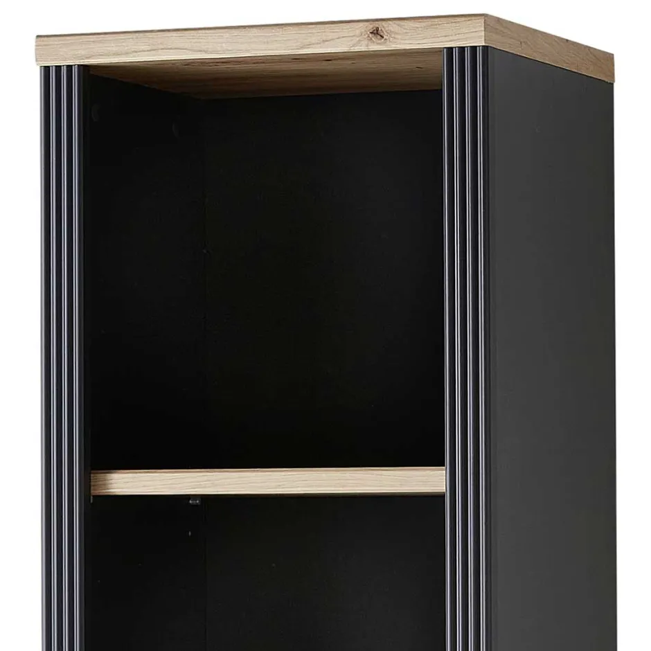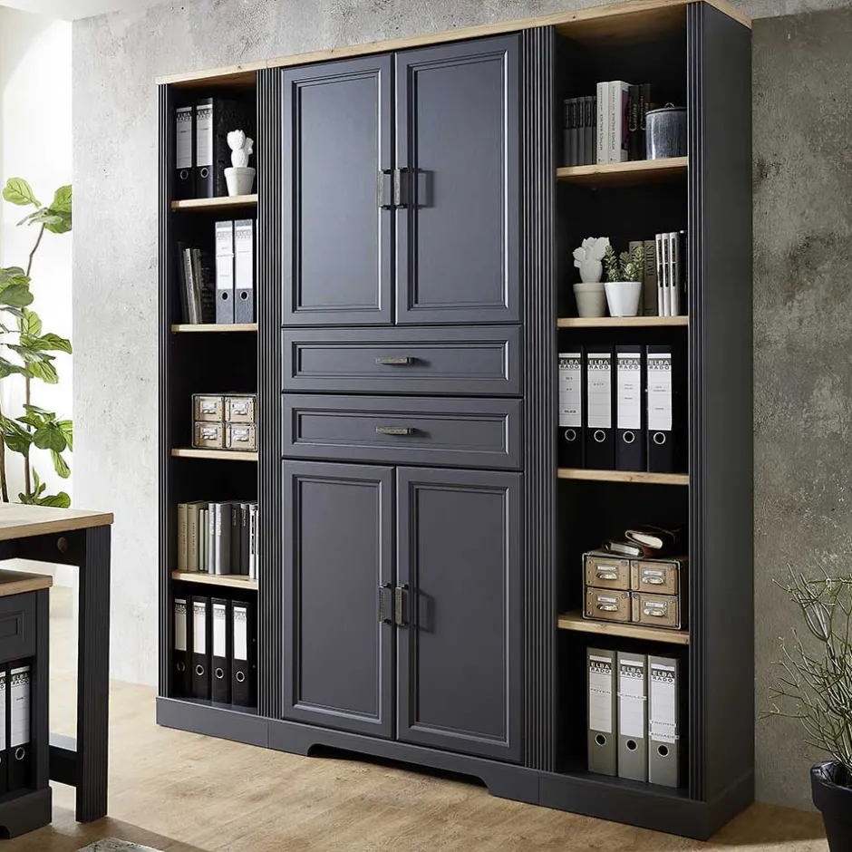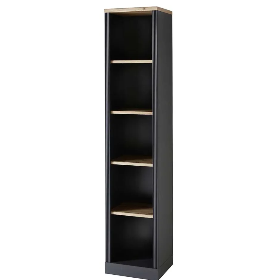 - Schmales Aktenregal in Dunkelgrau und Eichefarben