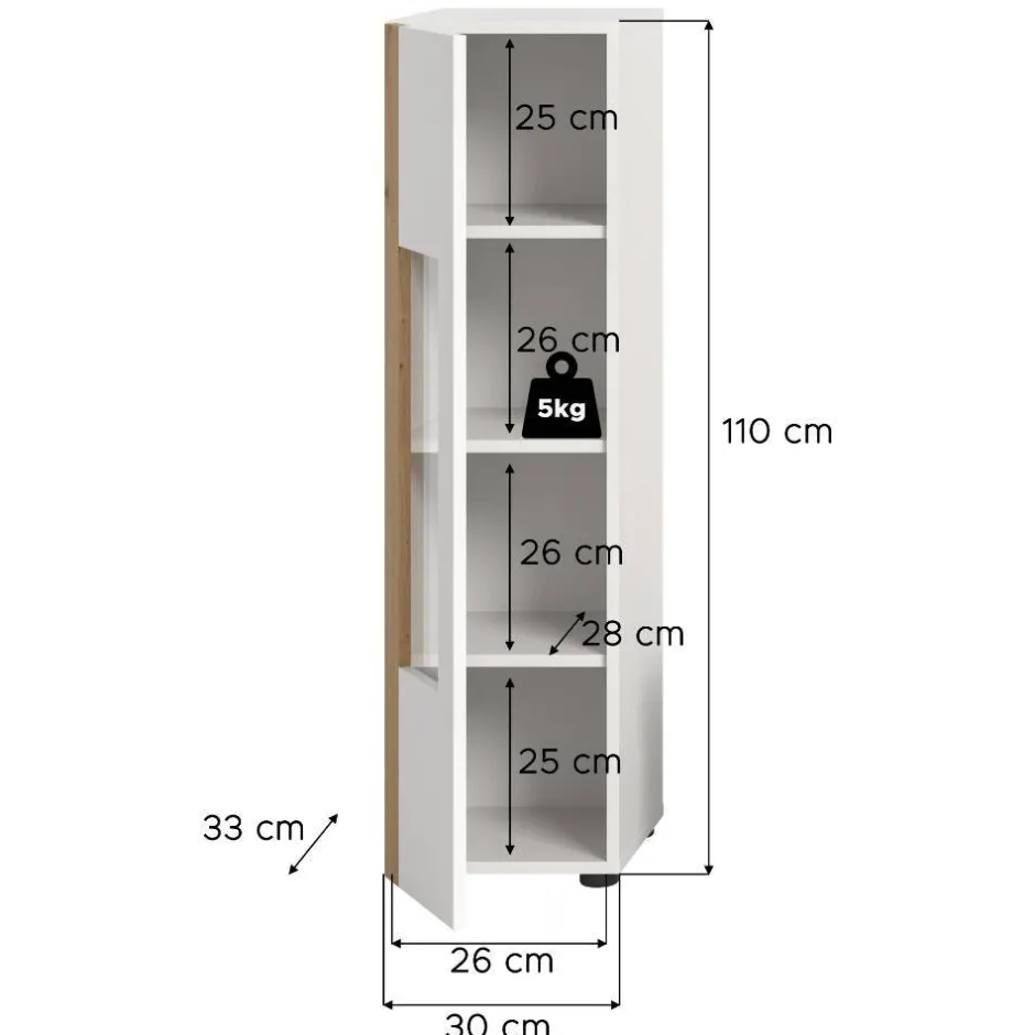 - Kompakte Vitrine in Weiß und Wildeichefarben