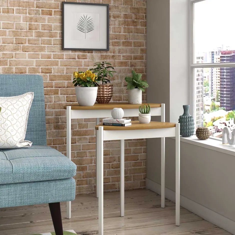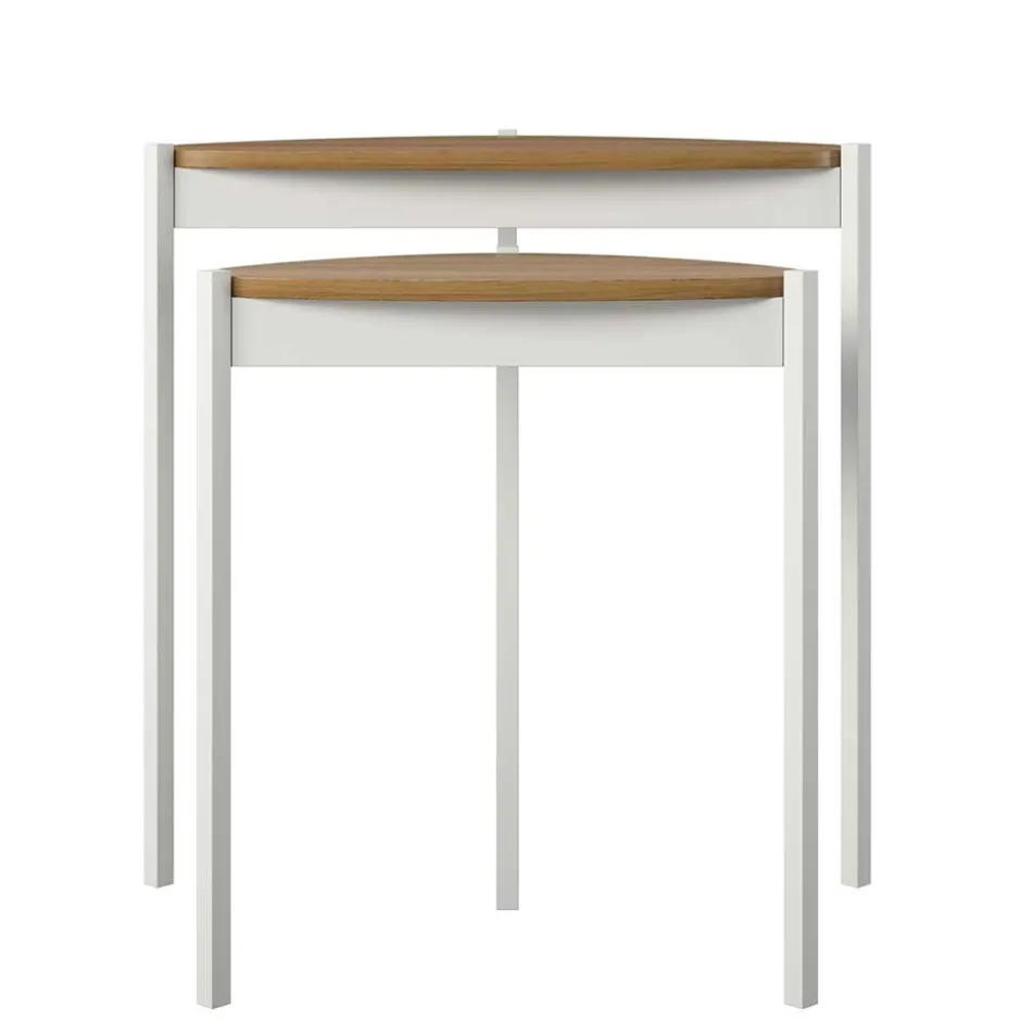 - Zierliches Beistelltisch Set in Walnussfarben und Weiß