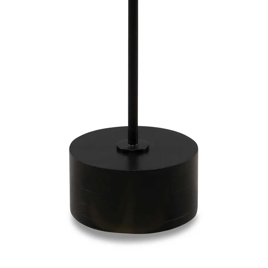 - Schwarzes Säulengestell aus Metall und ein Sockel aus schwarz lackiertem Akazienholz