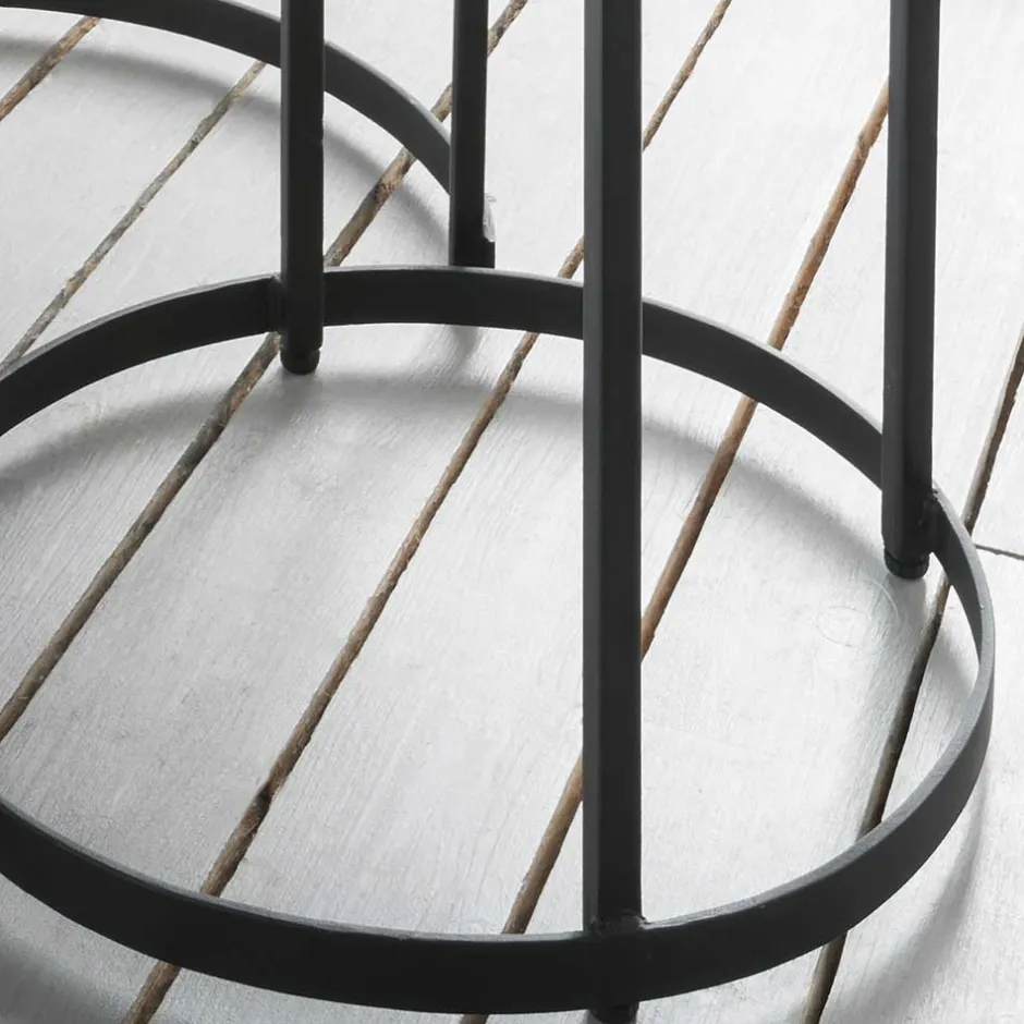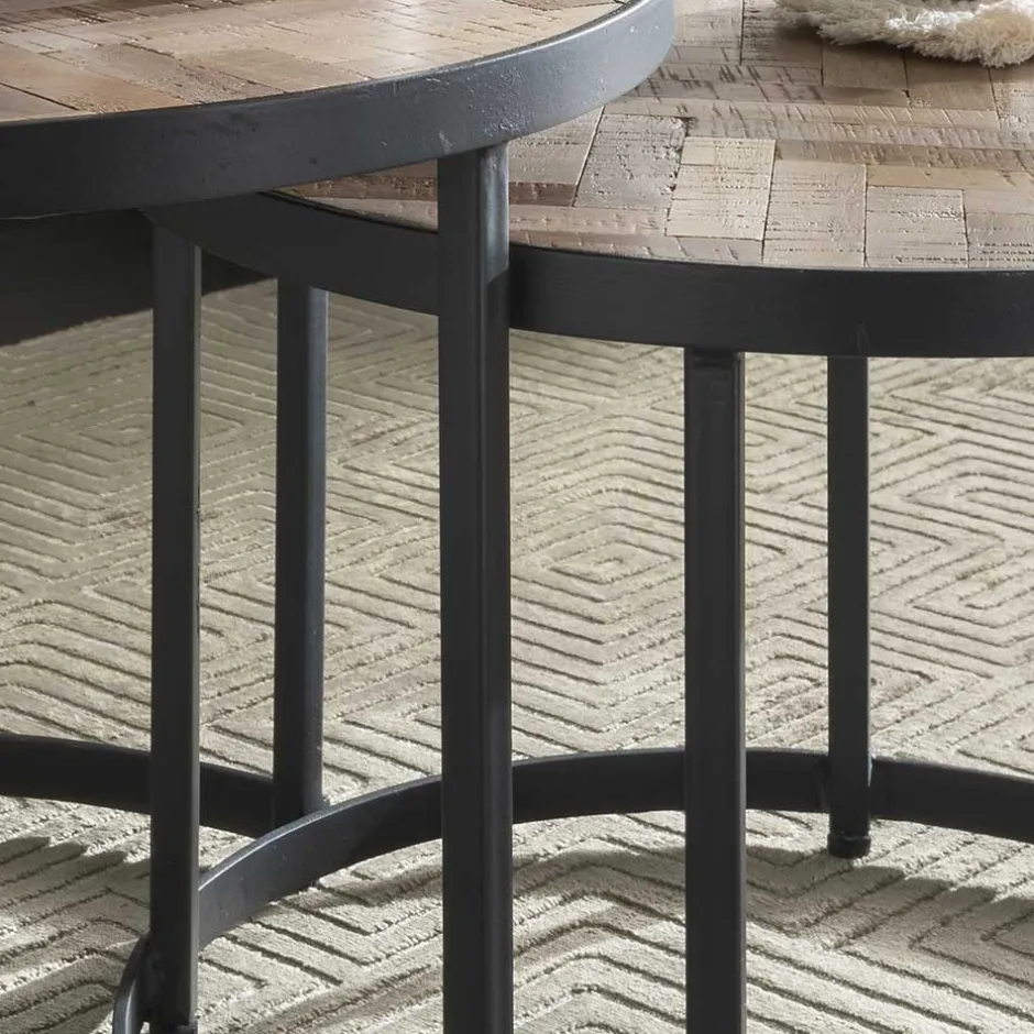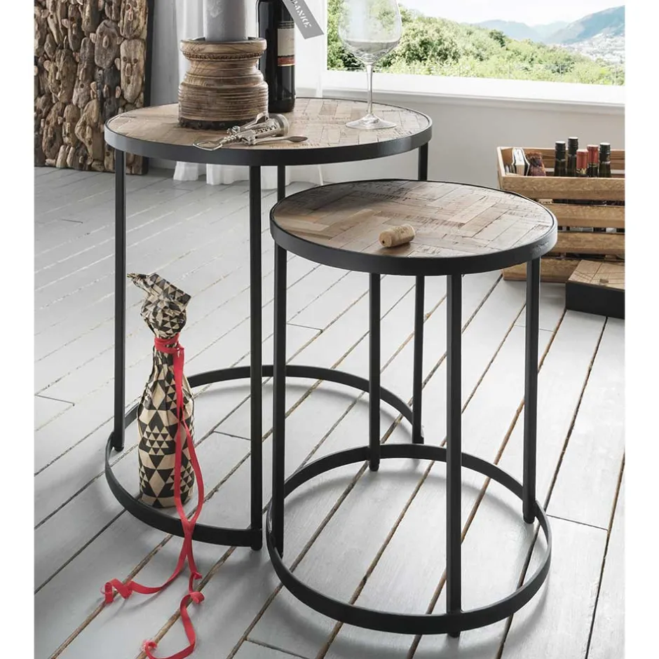 - Exklusive Zweisatz Tische in Teak Grey Wash und Schwarz