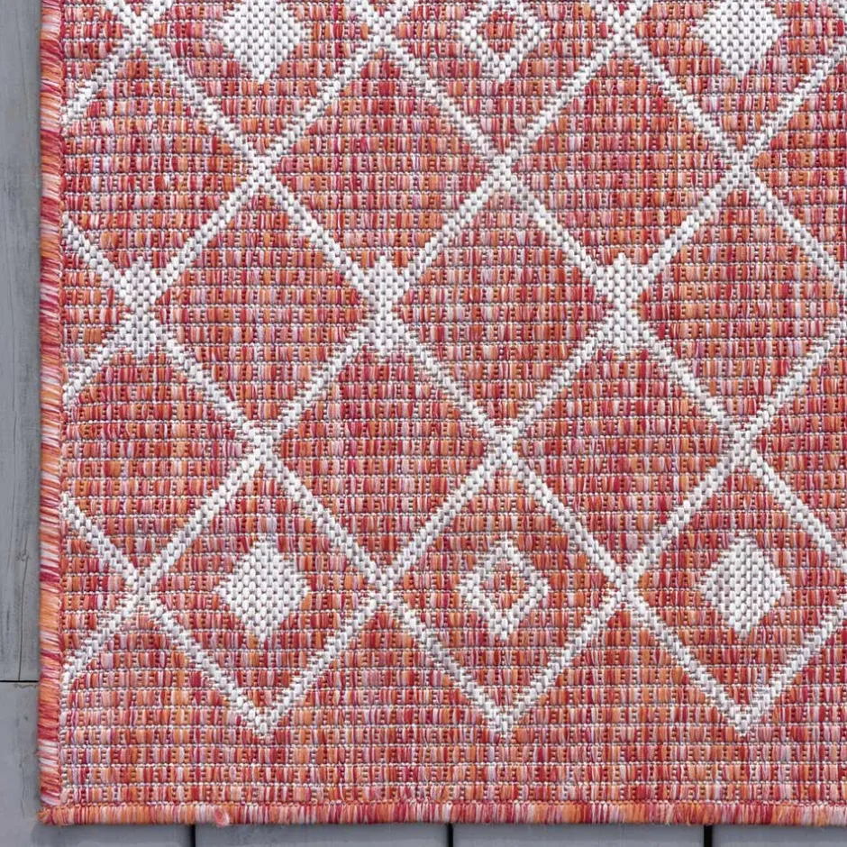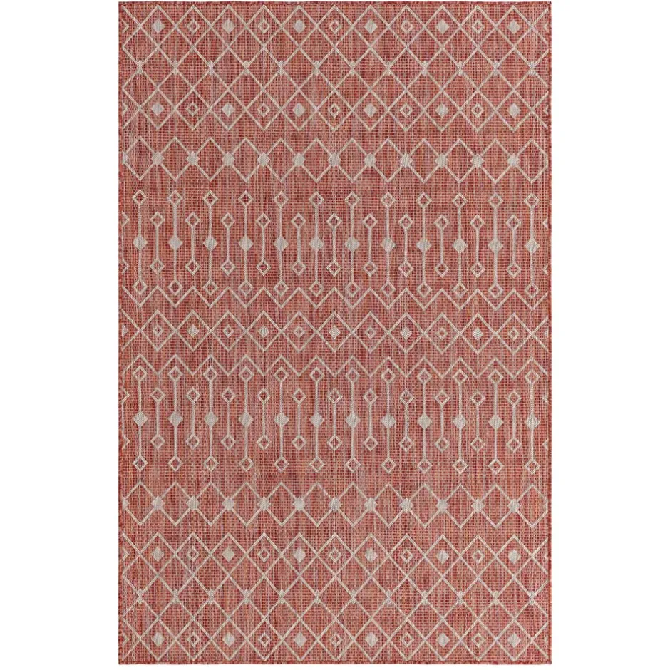 in Rostrot und Cremefarben mit geometrischem Muster