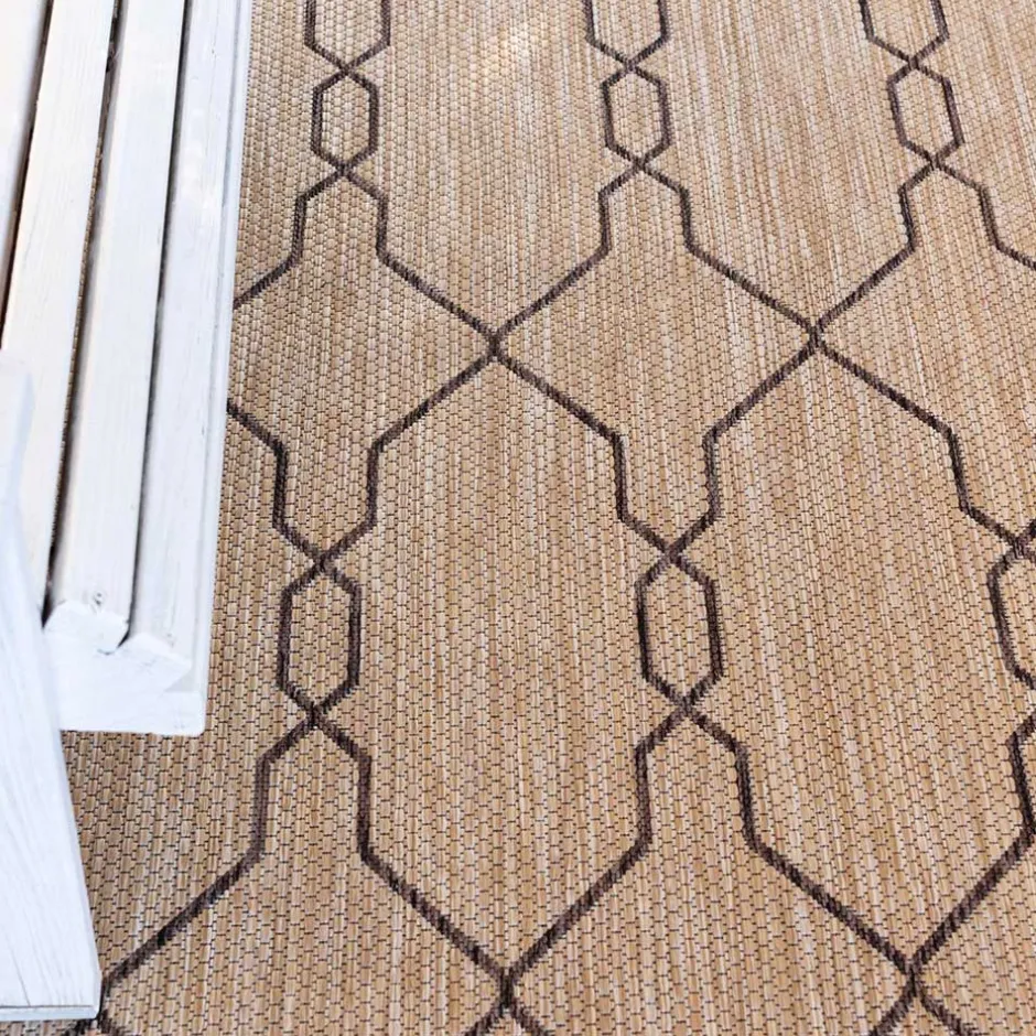 - Attraktiver In- und Outdoorteppich in Hellbraun und Dunkelgrau