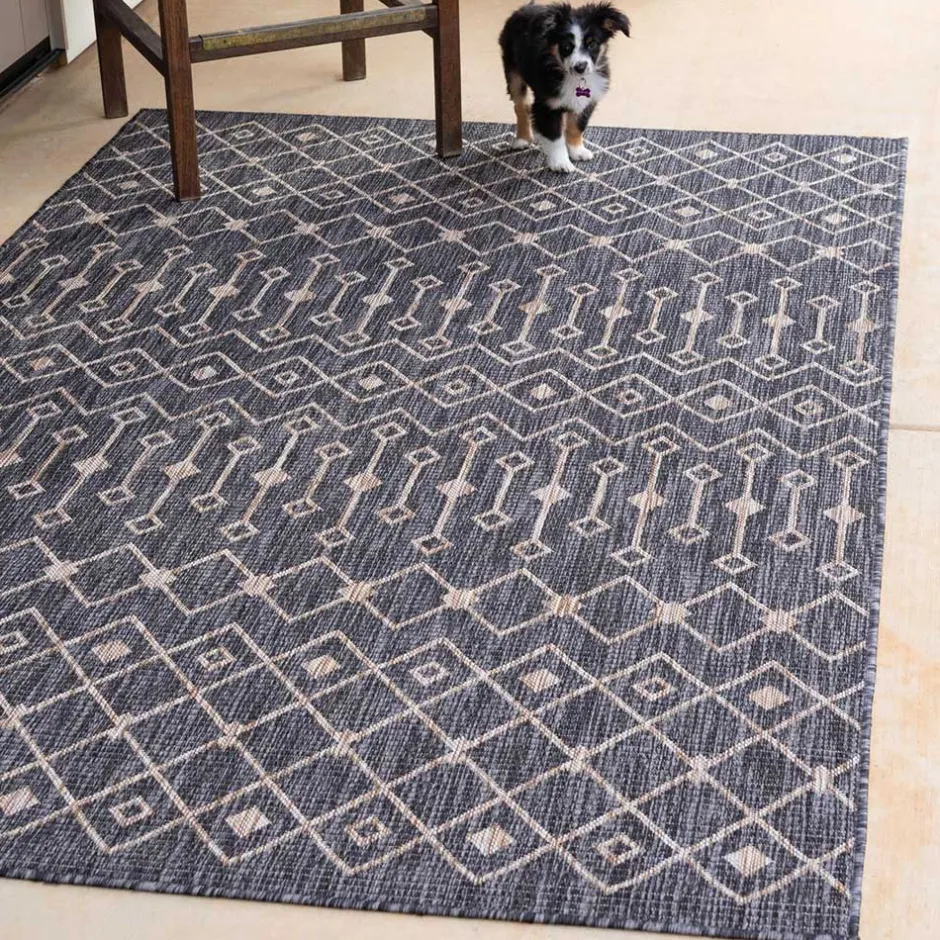 - Vielseitiger In- und Outdoorteppich in Dunkelgrau und Beige