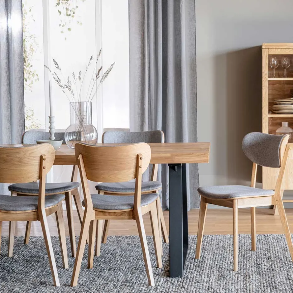 - Leicht geschwungene Lehne mit abgerundeten Ecken am oberen Ende des Stuhls