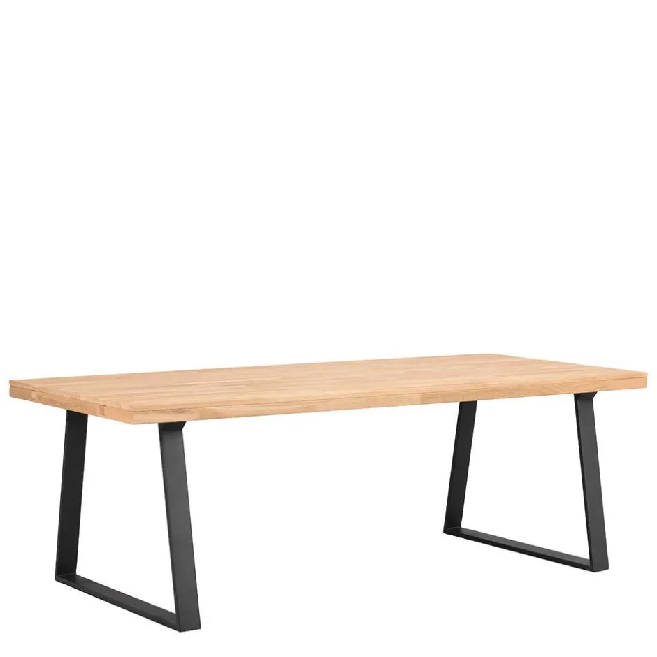 - Massive Eiche Tischplatte mit einer Stärke von ca. 1,8 cm, am Rand aufgedoppelt auf ca. 4 cm